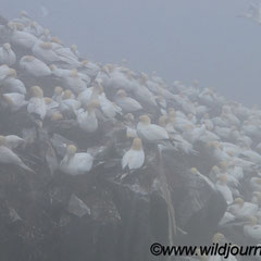 Da ich mit wenig Hoffnung und aus Angst um die gute Kamera Ausrüstung wegen der Feuchtigkeit nur die Kleine mitnahm, reiße ich mich los und hole schweres Gerät. Den ganzen Tag verbringe ich auf der nebeligen Klippe, das neue Teleobjektiv ist jeden Cent wert.