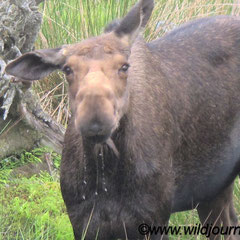 Ich sehe eine wunderschöne Riesen Eule, einen Weißkopfseeadler mit Nachwuchs, das Tele liegt natürlich im Wagen, eine lustige Elchkuh und einen Fischotter.