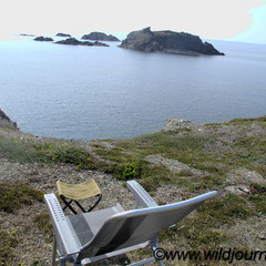 Nachdem Melvin mir den Weg gewiesen und ich festgestellt habe, dass ich fast unmittelbar davor stand, finde ich den Leuchtturm. Die versprochenen Eisberge tauchen nur als kleine Bröckchen am Horizont auf, egal, ein paar Schritte weiter finde ich einen genialen Übernachtungsplatz der so schön ist, dass ich gleich vier Tage bleibe. Die Hitze ist kaum mehr erträglich und das ist der Spot den ich in Neufundland gesucht habe, perfekt.
